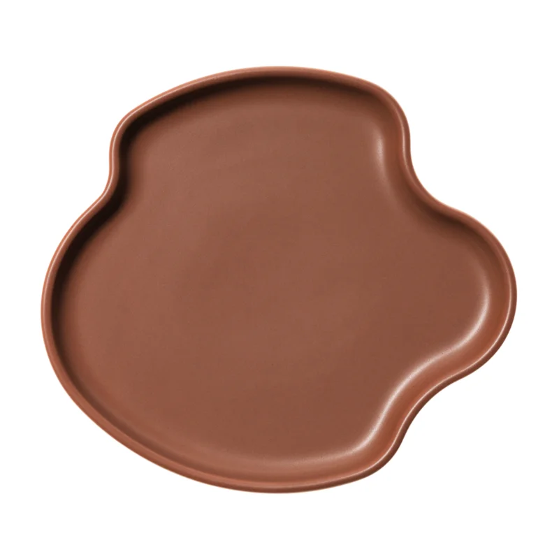 Keramični pladenj Aalto velikosti 15 cm s toplim terakotno rdečim odtenkom in mat glazuro ujame duh arhitekturne oblike v kompaktnem in vsestranskem kosu. Skrbno ročno izdelan je idealen za razstavljanje majhnih predmetov, strežbo prigrizkov ali dodajanje barve na polico ali mizo. Končna obdelava poudarja čiste, kiparske linije, kar pladnju daje otipljiv in oblikovalski videz. Je varen za živila in vizualno privlačen, zato se lepo poda k drugim velikostim v kolekciji in ustvari celovit, večplasten videz.